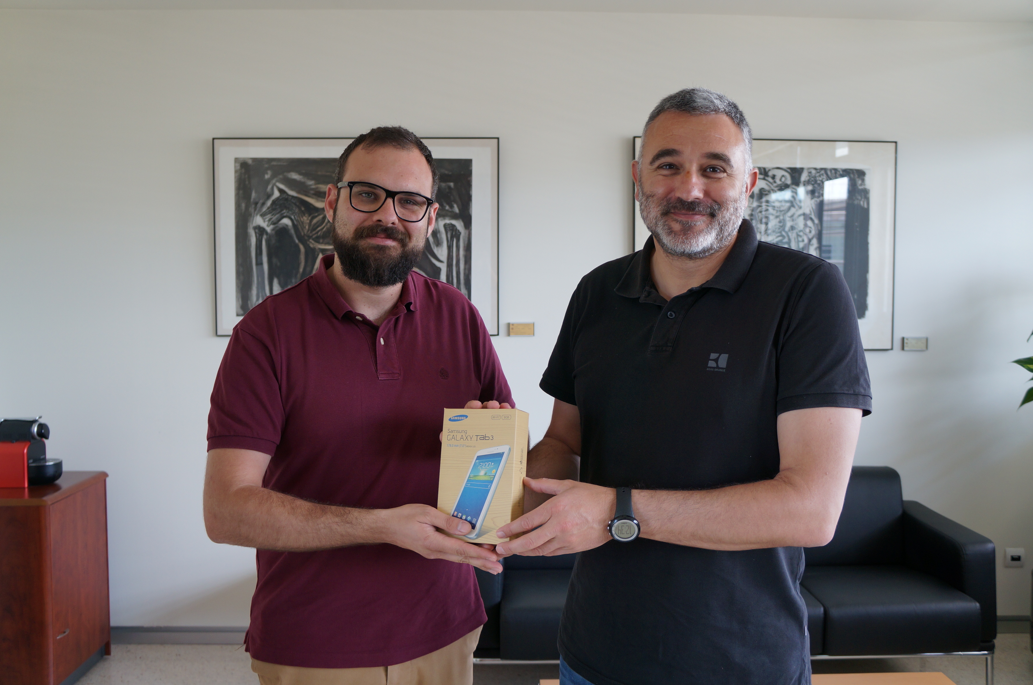 - La fotografía que encabeza la información corresponde con la entrega del premio a José Matías Cano Aguilar ganador en la categoría IV con la foto titulada: “Navega con tu inspiración sin rozar el suelo, flotando sobre tus dedos”, por parte del director de la ETSINF Eduardo Vendrell.
