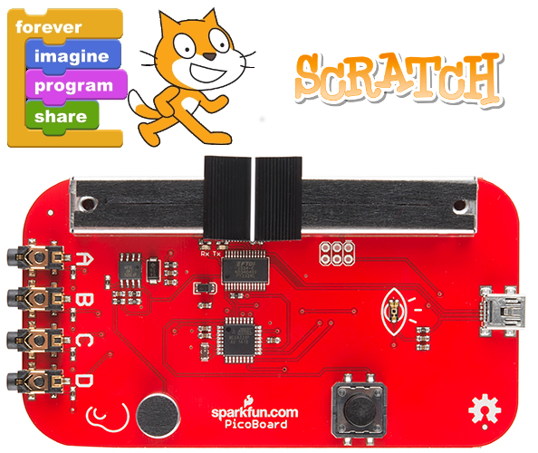 Este taller combina la programación en Scratch y la interacción con el mundo físico a través de la tarjeta de sensores Picoboard. Los visitantes se divertirán de lo lindo diseñando y programando juegos en los que intervienen deslizadores, botones y sensores de luz y sonido. Taller para personas con conocimientos básicos de programación en el entorno Scratch que quieran meter los efectos del mundo real en los programas (programación física).