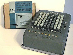 El comptómetro que fue la primera calculadora mecánica impulsada por tecla, fue patentado durante el 1887 en Chicago (Estados Unidos) por Dorr Eugene Felt. Este invento fue todo un avance para el cálculo del comercio ya que era una calculadora capaz de realizar cálculos rápidamente mediante la pulsación de diferentes teclas al mismo tiempo utilizando tantos dedos como los que fuesen requeridos. Fue la primera calculadora mecánica en construirse a gran escala industrial gracias a su simplicidad de uso, rapidez y fiabilidad suficientes para aportar beneficios económicos significativos con el tratamiento de datos empresariales. Tuvo una gran aceptación extraordinaria exportándose por todo el mundo.