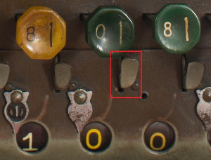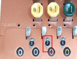 Para poder realizar operaciones en un comptómetro primero tenemos que saber cuáles son las piezas que se utilizan a la hora de realizar operaciones como sumas, restas, multiplicaciones y divisiones. Las imágenes siguientes muestran estas piezas: