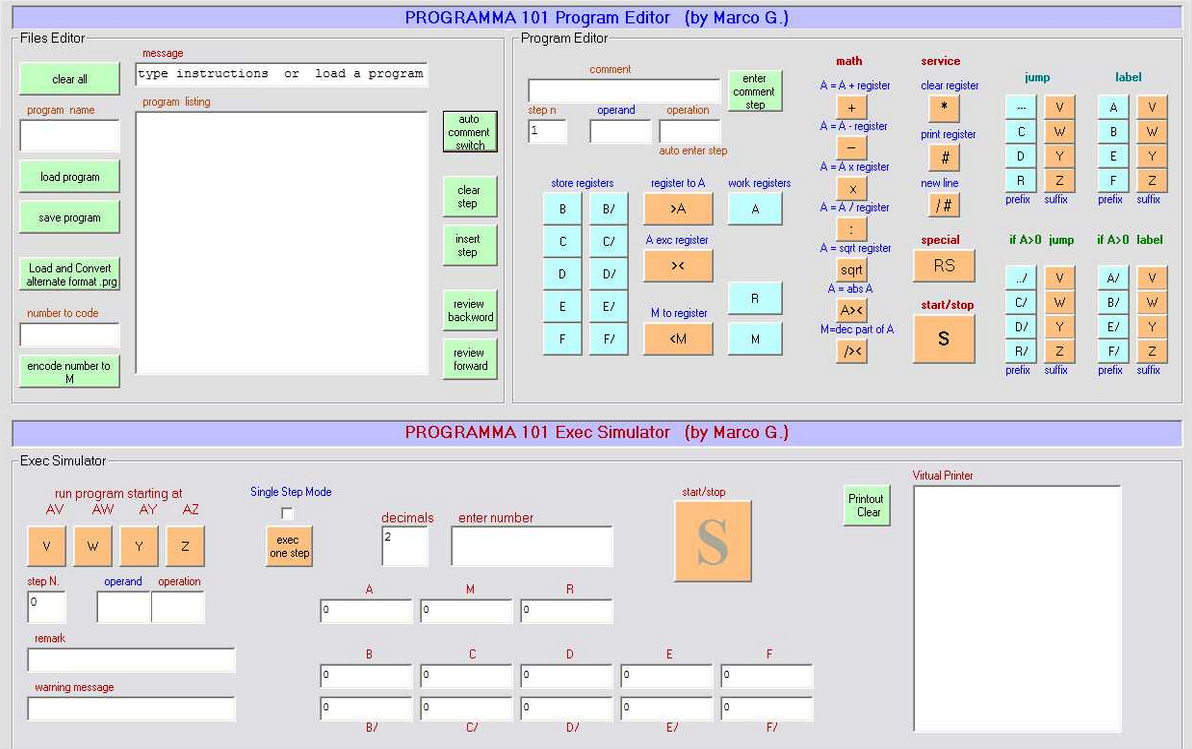 One of them is the one developed by Marco Galeotti, this has a didactic interface focused on teaching how the Programma 101 works internally.