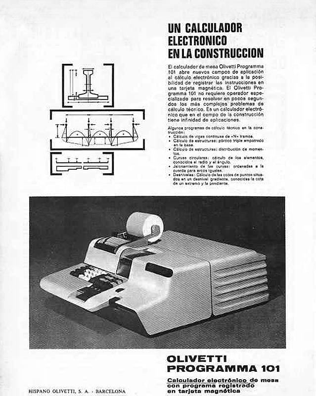 In spring 1962 Roberto Olivetti, then president of the Italian company Olivetti, gave instructions to the engineer Pier Giorgio Perotto to initiate the feasibility study of an electronic calculator able to automatize a sequence of instructions. It had to be affordable for a non-specialized user, at a reasonable price and with small dimensions similar to those of a typewriter. .