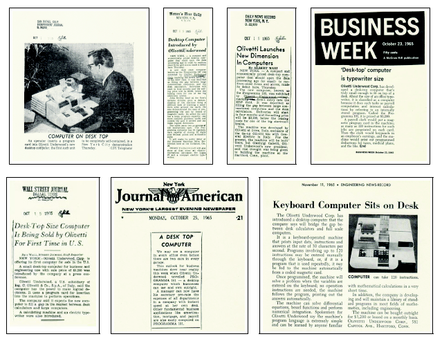 In October 1965 there was a presentation of the Programma 101 at the BEMA Universal Exhibition in New York, directed to non-specialized users in computing.