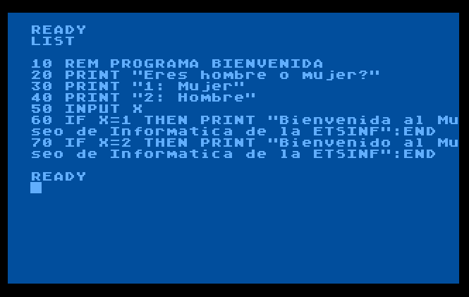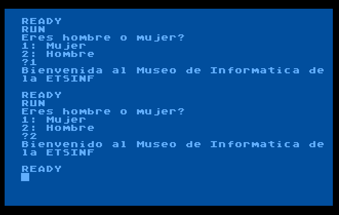 Programa senzill en Atari BASIC que ens mostra la resposta en saludar, depenent de l’elecció.
